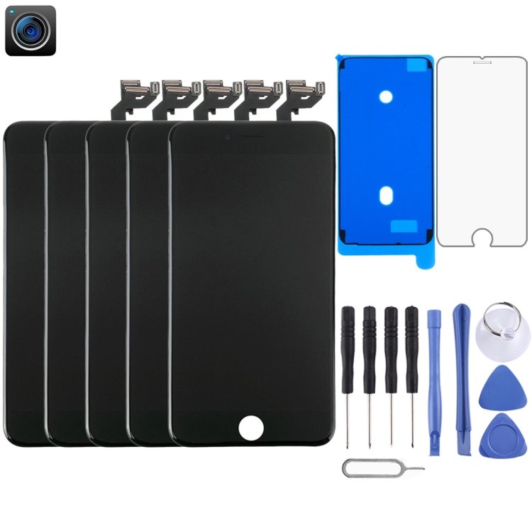 5 PCS LCD Screen with Front Camera for iPhone 6s Plus (Black)